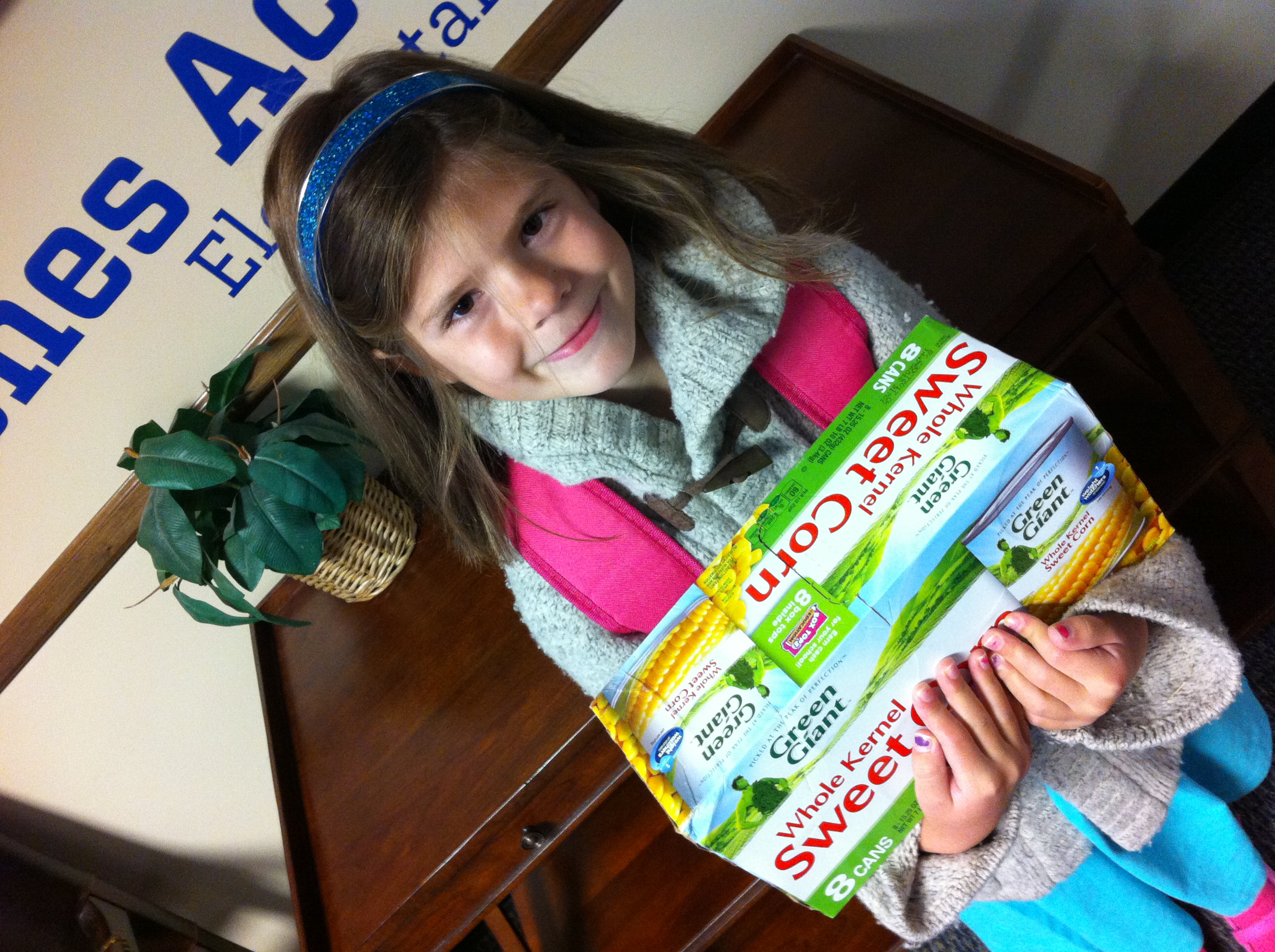 Elementary students worked hard to bring in food in order to be a Thanksgiving blessing to families in need.