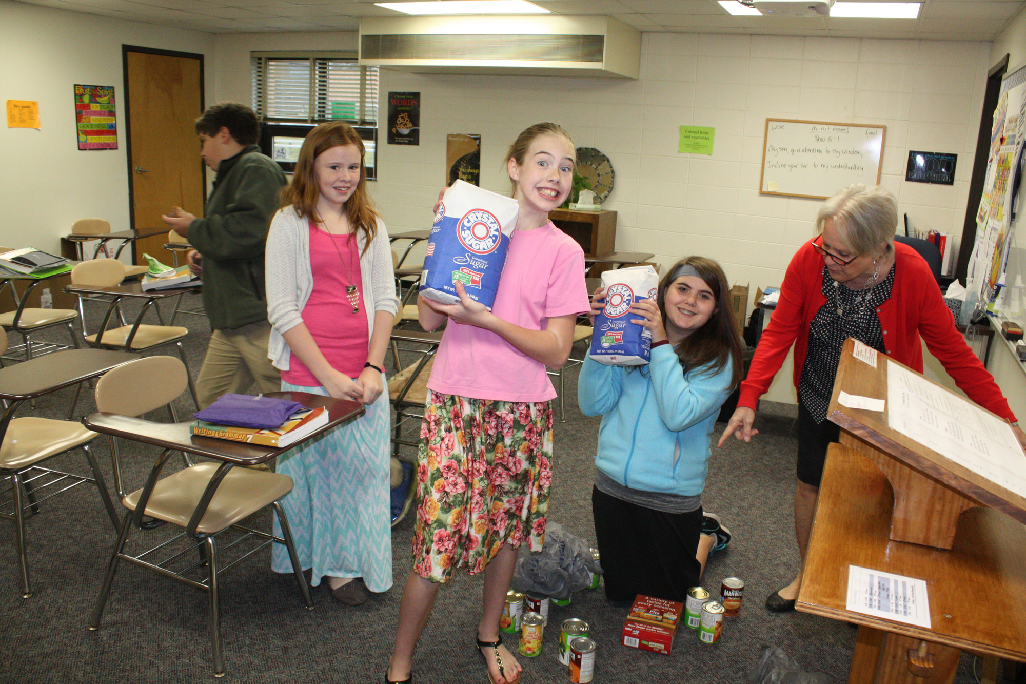 Finally, high school students gathered paper goods for Shepherd’s Gate, a ministry of Miracle Hill. The ninth grade class collected paper napkins while the tenth grade class gathered boxes of tissues. Paper towels rolled in with eleventh grade students, and toilet paper came in with twelfth grade students. Overall the high school students brought in enough paper goods to help the ministry of Shepherd’s Gate to get through much of the coming year.